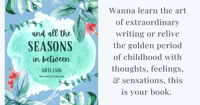 If you want to learn the art of developing memorable characters for your story from the people around you or want to master the skill of writing exceptional metaphors or want to have a command on vivid description of events, you must read And All the Seasons in Between by Arti Jain.