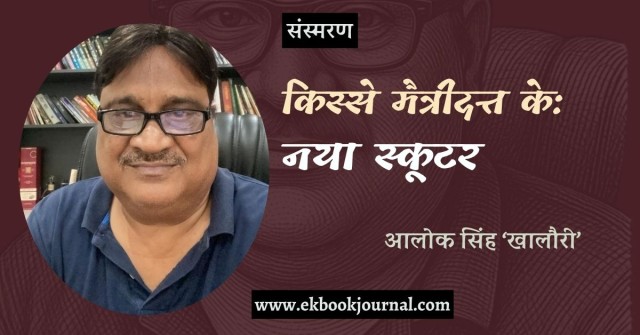 हम सभी के जीवन में कुछ लोग ऐसे आते हैं जिनके व्यक्तित्व की गहरी छाप हमारे मन मस्तिष्क पर छूट जाती है। उनके साथ रहने पर जीवन में ऐसे रोचक प्रसंग होने लगते हैं जो भले ही घटित होने के दौरान हमारी जान सुखा दें लेकिन जिन्हें भविष्य में याद करते हुए हमारे चेहरे पर मुस्कान सी आ जाती है। लेखक आलोक सिंह खालौरी के मित्र मैत्रीदत्त भी ऐसी ही शख्सियत के मालिक थे। पढ़ें मैत्रीदत्त से जुड़ा लेखक आलोक सिंह खालौरी का लिखा यह संस्मरण 'नया स्कूटर'