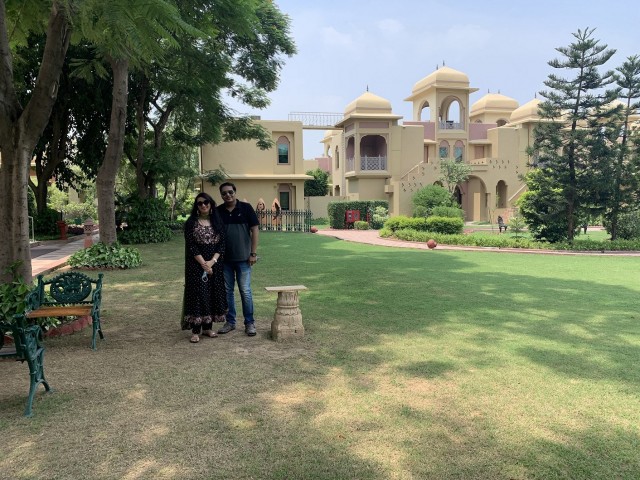 The royal grandeur and Rajputana architecture, lush greenery, and majestic haveli-style palatial resort were enough to lure us. Read my review.