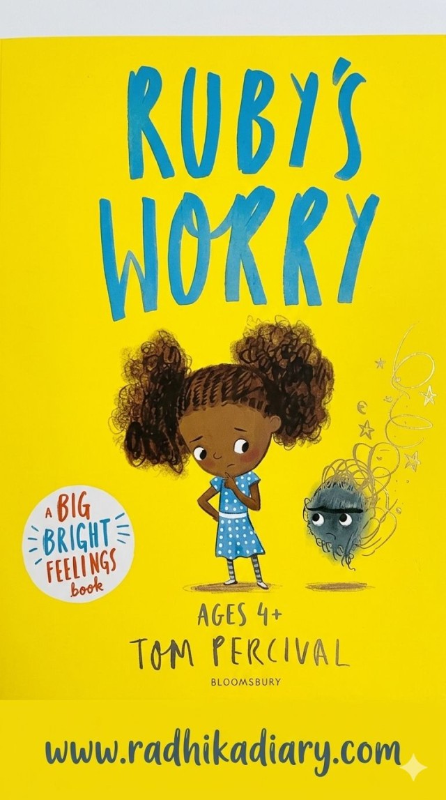 This is a storybook by Tom Percival. It is the story of a girl named Ruby, who is carefree and full of life. She loves swinging up high and exploring wild, faraway places. But one day, she discovers a “worry.” She doesn’t understand it at first and, by ignoring it, unknowingly allows it to grow bigger and bigger.