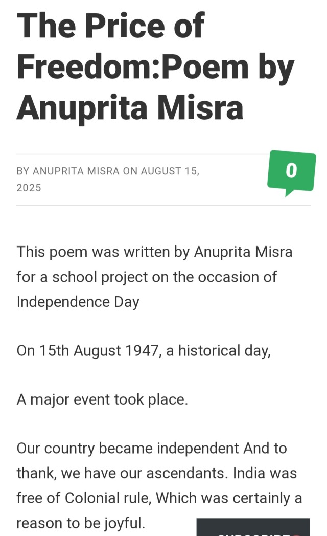 This poem was written by Anuprita Misra for a school project on the occasion of Independence Day On 15th August 1947, a historical day, A major event took